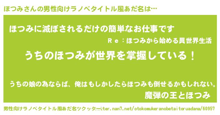 | 意味不明あだ名 | 『住所不定無職ほつみ(85歳)』『自称ほつみ』 |