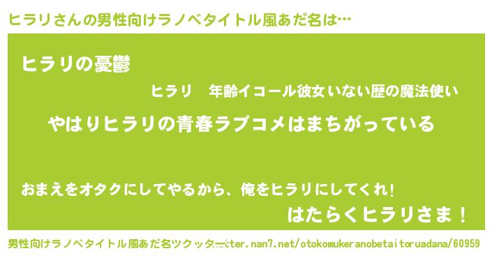 | 意味不明あだ名 | 『ヒラリフォーエバー』『ペロリンヒラリ』 |