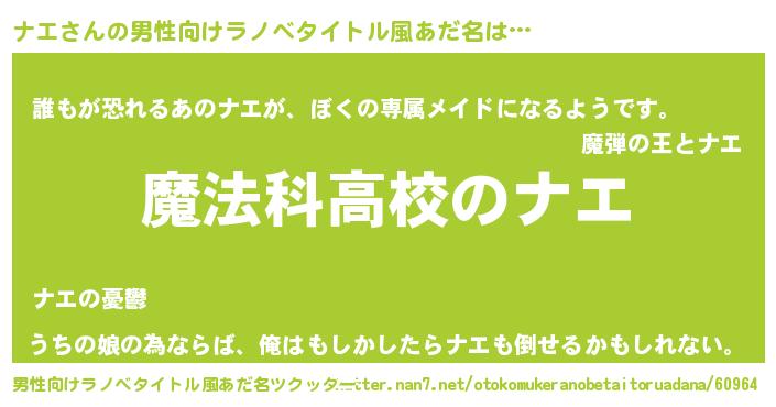 | 女子向けラノベタイトル風あだ名 | 『ナエなんてお断りですっ。』 |