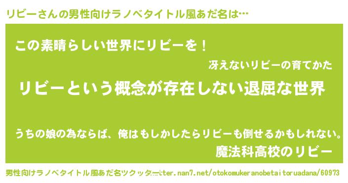 | 胡散臭い通販商品みたいなあだ名 | 『来世でも幸せになれる健康食品…その名も「リビー」』 |