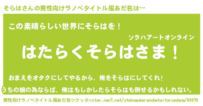 | 意味不明あだ名 | 『住所不定無職そらは(41歳)』 |