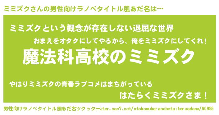 | 意味不明あだ名 | 『自称ミミズク』『永久保存ミミズク』 |