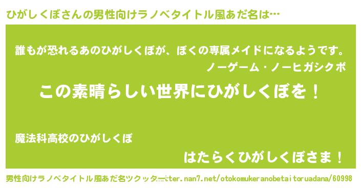 | 意味不明あだ名 | 『住所不定無職ひがしくぼ(11歳)』 |