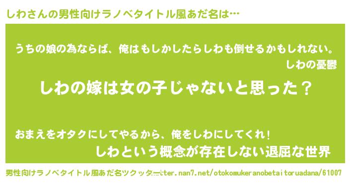| ヒーロー風カッコイイあだ名 | 『幻影騎士シワ』『ウルトラしわマン』 |