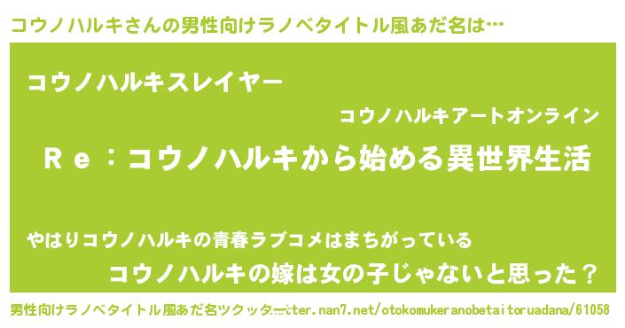 | 女子向けラノベタイトル風あだ名 | 『コウノハルキストレイドッグス』 |