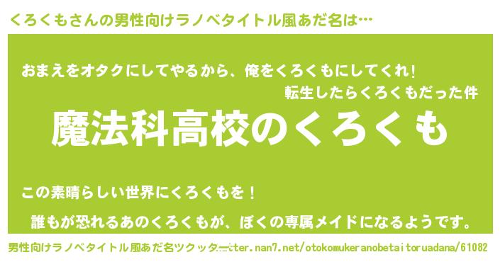 | 女子向けラノベタイトル風あだ名 | 『くろくもなんてお断りですっ。』 |