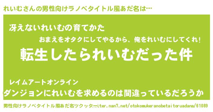 | 欧米人風あだ名 | 『トリンドルれいむ』『ウサインれいむ』 |