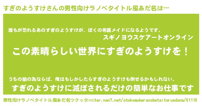 | 意味不明あだ名 | 『住所不定無職すぎのようすけ(50歳)』 |