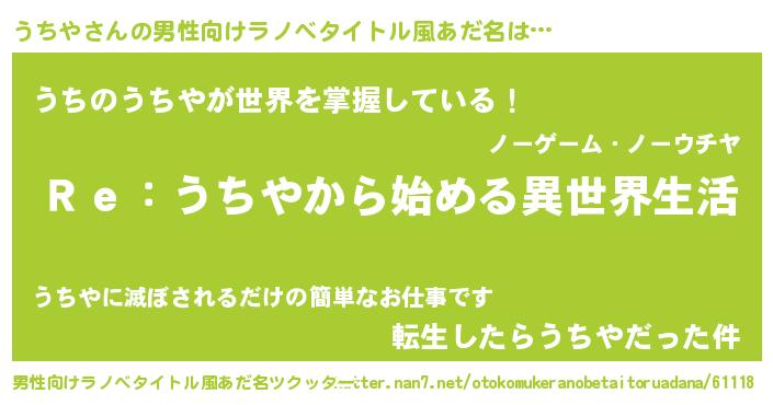 | ヒーロー風カッコイイあだ名 | 『究極戦士ウチヤ』『慈愛の使者うちや』 |