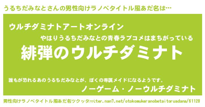 | 女子向けラノベタイトル風あだ名 | 『シンデレラうるちだみなと家の靴箱館』 |