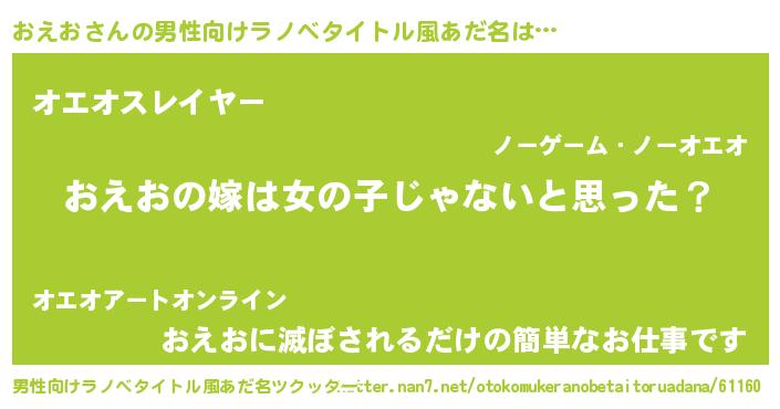 | 女子向けラノベタイトル風あだ名 | 『おえお様がみてる』『おえお恋絵巻』 |