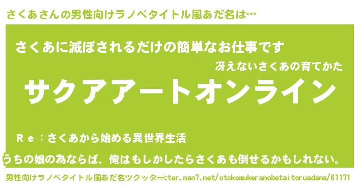 | ファンタジー風あだ名 | 『サクフェル』『エターナルサクアー』 |