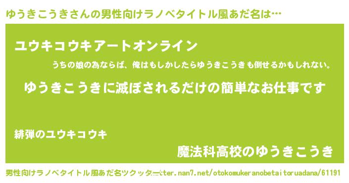 | ヒーロー風カッコイイあだ名 | 『スーパーユウキコウキ』『黄金騎士ユウ』 |