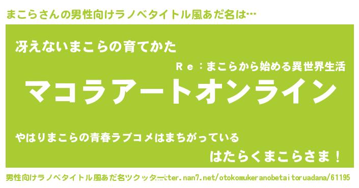 | 女子向けラノベタイトル風あだ名 | 『まこら姫と円卓の騎士』『闇のまこら』 |
