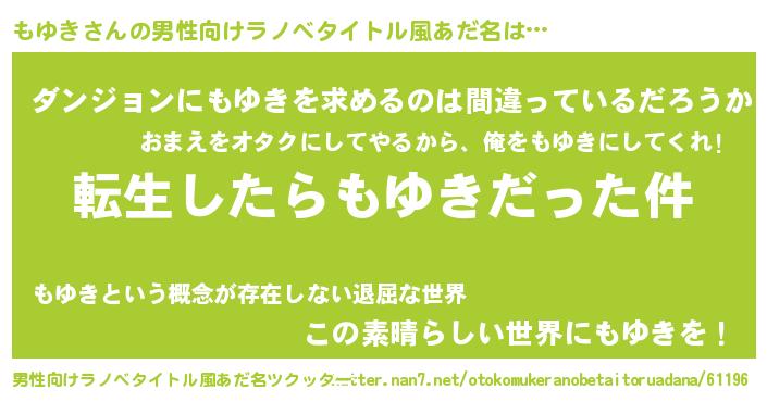 | 料理風あだ名 | 『もゆきごはん』『もゆきの豆乳スープ』 |