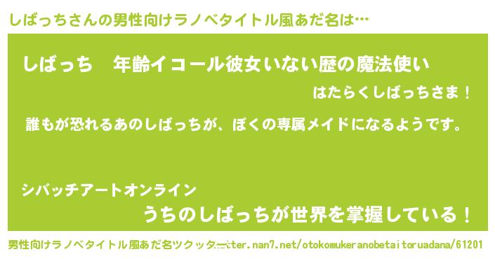 | 女子向けラノベタイトル風あだ名 | 『異世界でカフェしばっちを開店しました。』 |