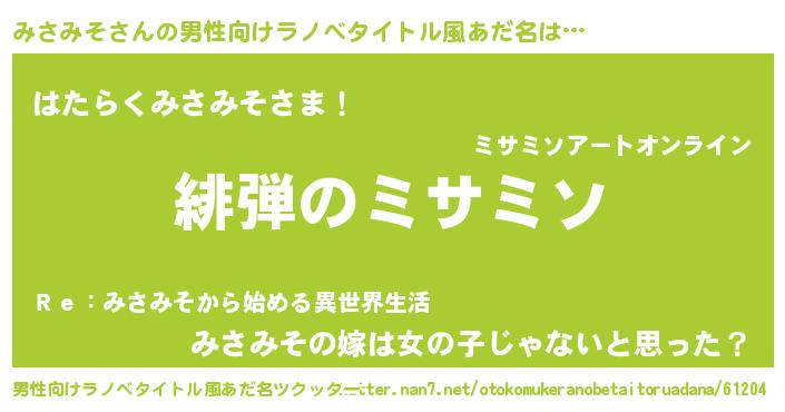 | 女子向けラノベタイトル風あだ名 | 『シンデレラみさみそ家の靴箱館』 |