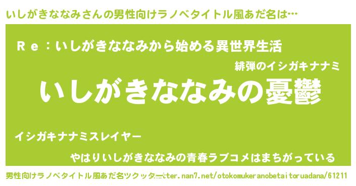 | 胡散臭い通販商品みたいなあだ名 | 『必ず成功するブレスレット…その名も「いしがきななみ」』 |
