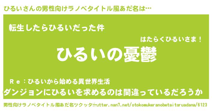 | 女子向けラノベタイトル風あだ名 | 『ひるい姫と円卓の騎士』『闇のひるい』 |