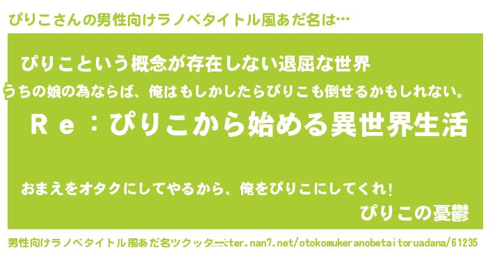| 意味不明あだ名 | 『自称ぴりこ』『永久保存ぴりこ』 |