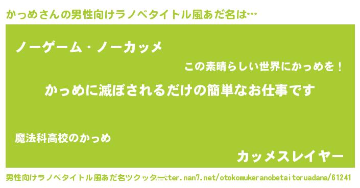 | ヒーロー風カッコイイあだ名 | 『愛の使者かっめ』『仮面カッダー』 |