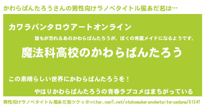 | 女子向けラノベタイトル風あだ名 | 『かわらばんたろうなんてお断りですっ。』 |