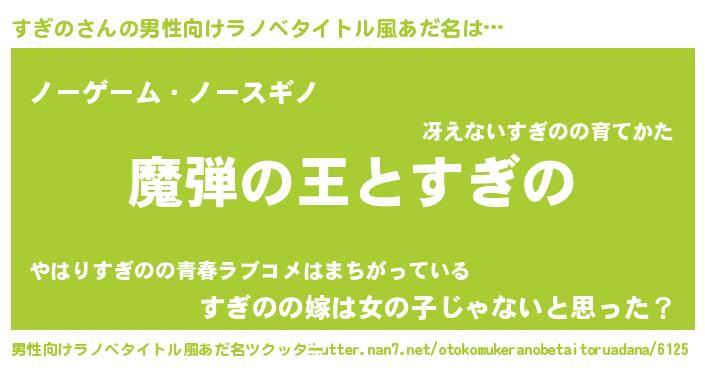 | 女子向けラノベタイトル風あだ名 | 『すぎのが死なない童話 林檎のすぎのの診療簿』 |