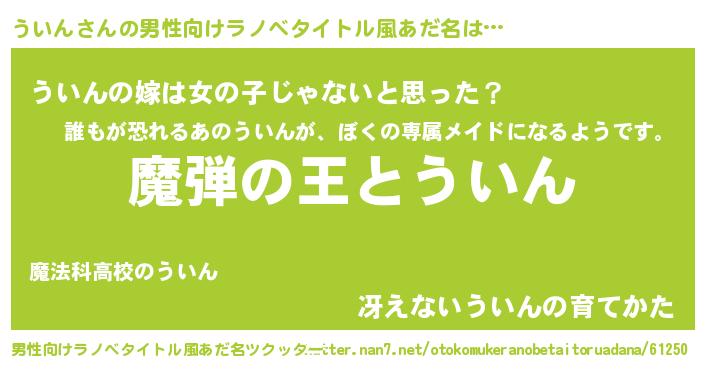 | 女子向けラノベタイトル風あだ名 | 『ういんが死なない童話 林檎のういんの診療簿』 |