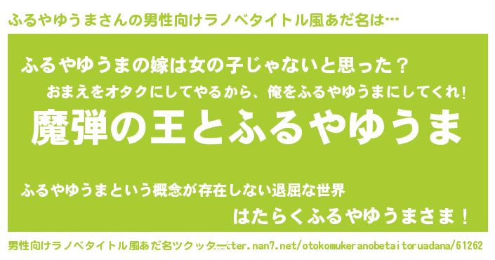| 女子向けラノベタイトル風あだ名 | 『ふるやゆうまが死なない童話 林檎のふるやゆうまの診療簿』 |