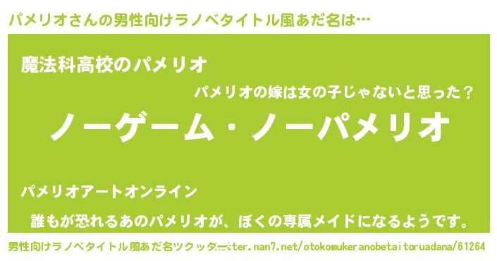 | ヘコむあだ名 | 『パメリオ(笑)』『パメお』 |