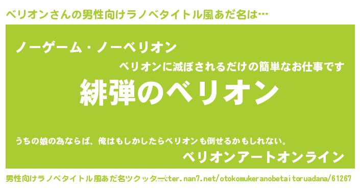 ベリオンさんの男性向けラノベタイトル風あだ名をツクッター!