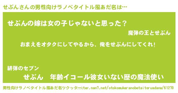 | 意味不明あだ名 | 『眠気覚ましガムせぶん味』『自称せぶん』 |