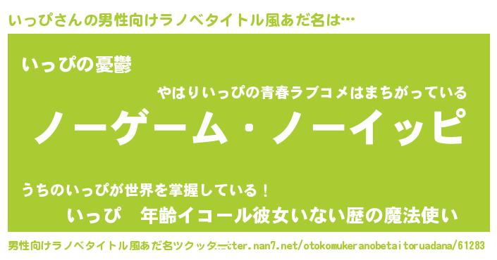 | 女子向けラノベタイトル風あだ名 | 『いっぴ恋絵巻』『いっぴの玉の輿計画!』 |