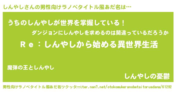 | ヒーロー風カッコイイあだ名 | 『最強戦士シンヤシ』『スーパーシンヤシ』 |