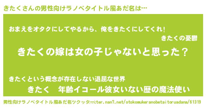 きたくさんの男性向けラノベタイトル風あだ名をツクッター!