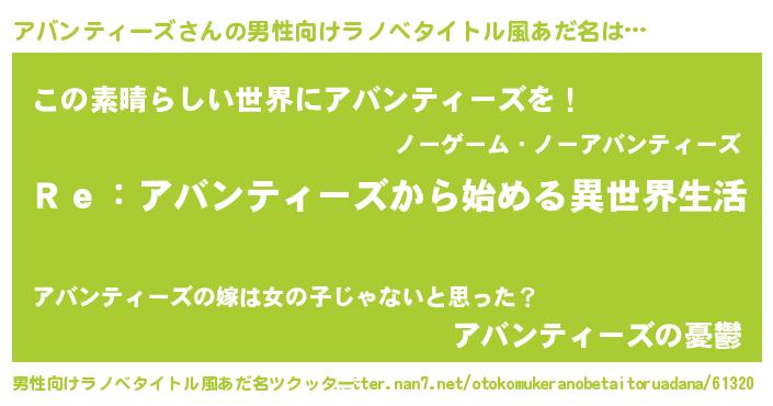 | 意味不明あだ名 | 『自称アバンティーズ』 |