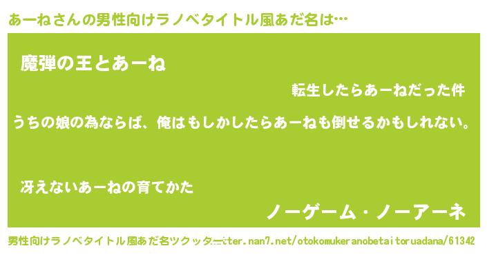| 意味不明あだ名 | 『あーねフォーエバー』『自称あーね』 |