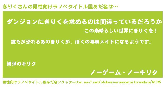 | 伝説のあだ名 | 『古文書に記された暗殺者きりく』 |