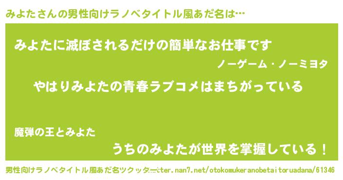 | 意味不明あだ名 | 『みよたフォーエバー』『自称みよた』 |