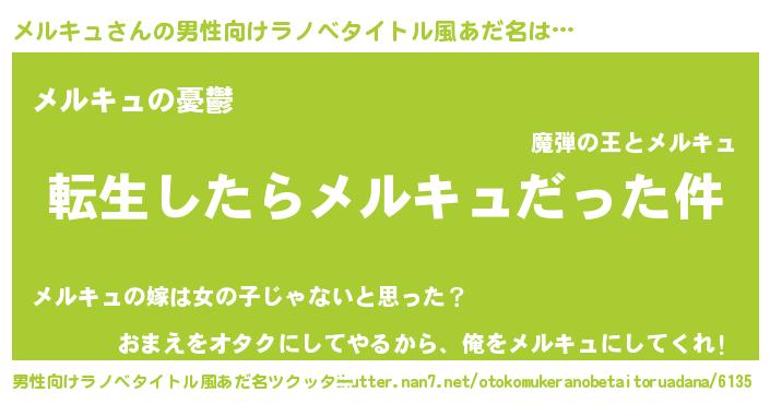 | 女子向けラノベタイトル風あだ名 | 『メルキュの玉の輿計画!』 |