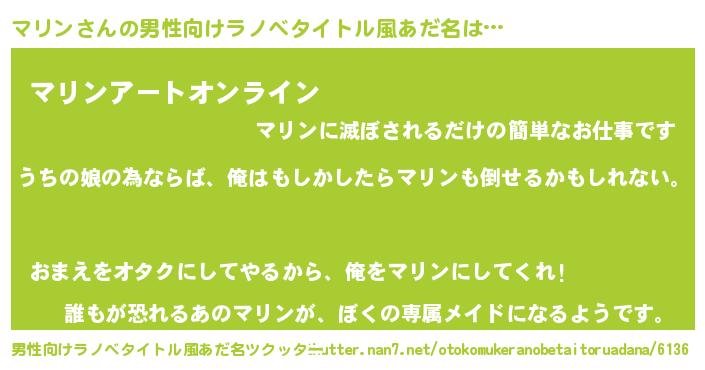 | 意味不明あだ名 | 『マリンフォーエバー』『ペロリンマリン』 |