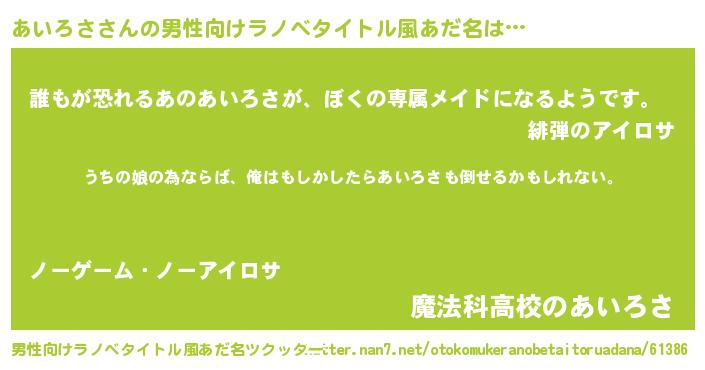 | 意味不明あだ名 | 『あいろさフォーエバー』『自称あいろさ』 |