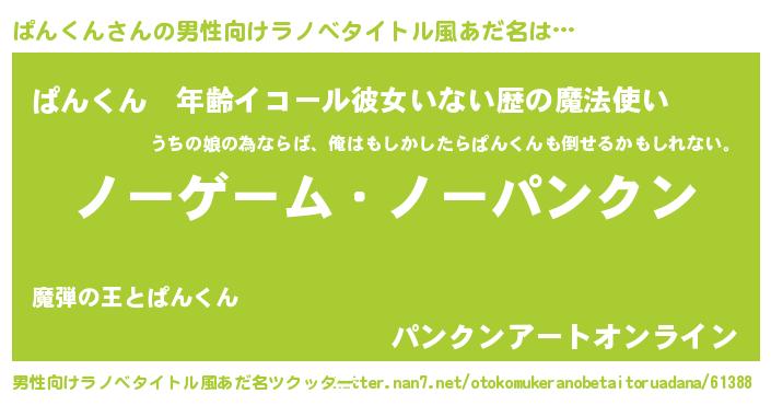 | ヒーロー風カッコイイあだ名 | 『慈愛の使者ぱんくん』『仮面パンダー』 |