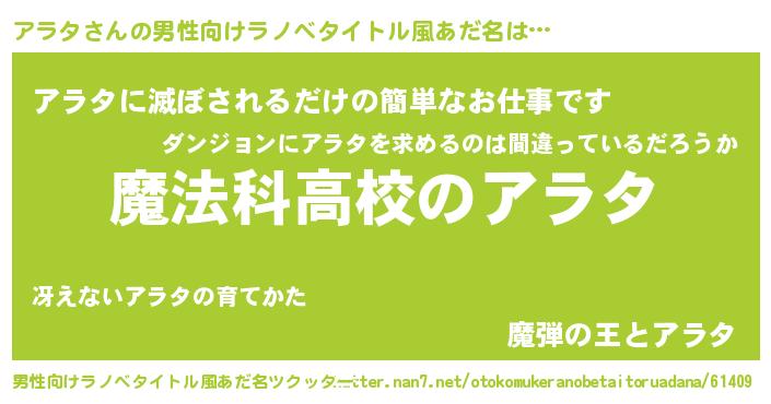 | 女子向けラノベタイトル風あだ名 | 『アラタなんてお断りですっ。』 |