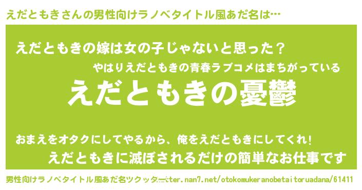 えだともきさんの男性向けラノベタイトル風あだ名をツクッター!