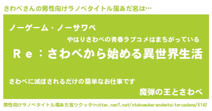 | ヒーロー風カッコイイあだ名 | 『最強戦士サワベ』『友情の使者さわべ』 |