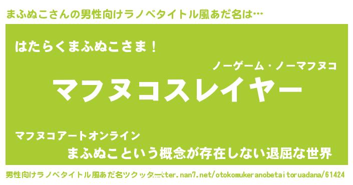 まふぬこさんの男性向けラノベタイトル風あだ名をツクッター!