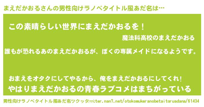 | 意味不明あだ名 | 『永久保存まえだかおる』 |