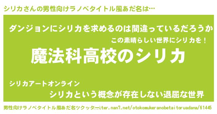 | 意味不明あだ名 | 『自称シリカ』『とにかく怪しいシリカ』 |
