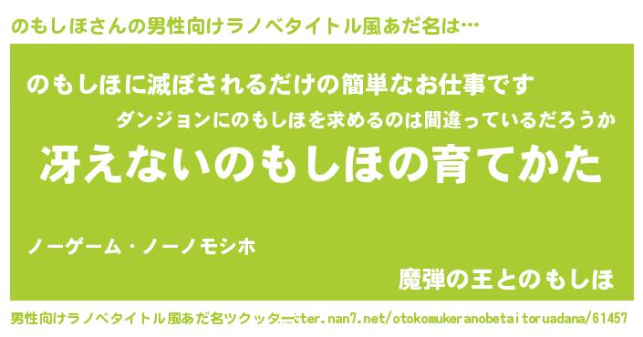 | ヘコむあだ名 | 『のもぷりん』『のもしほ(苦笑)』 |